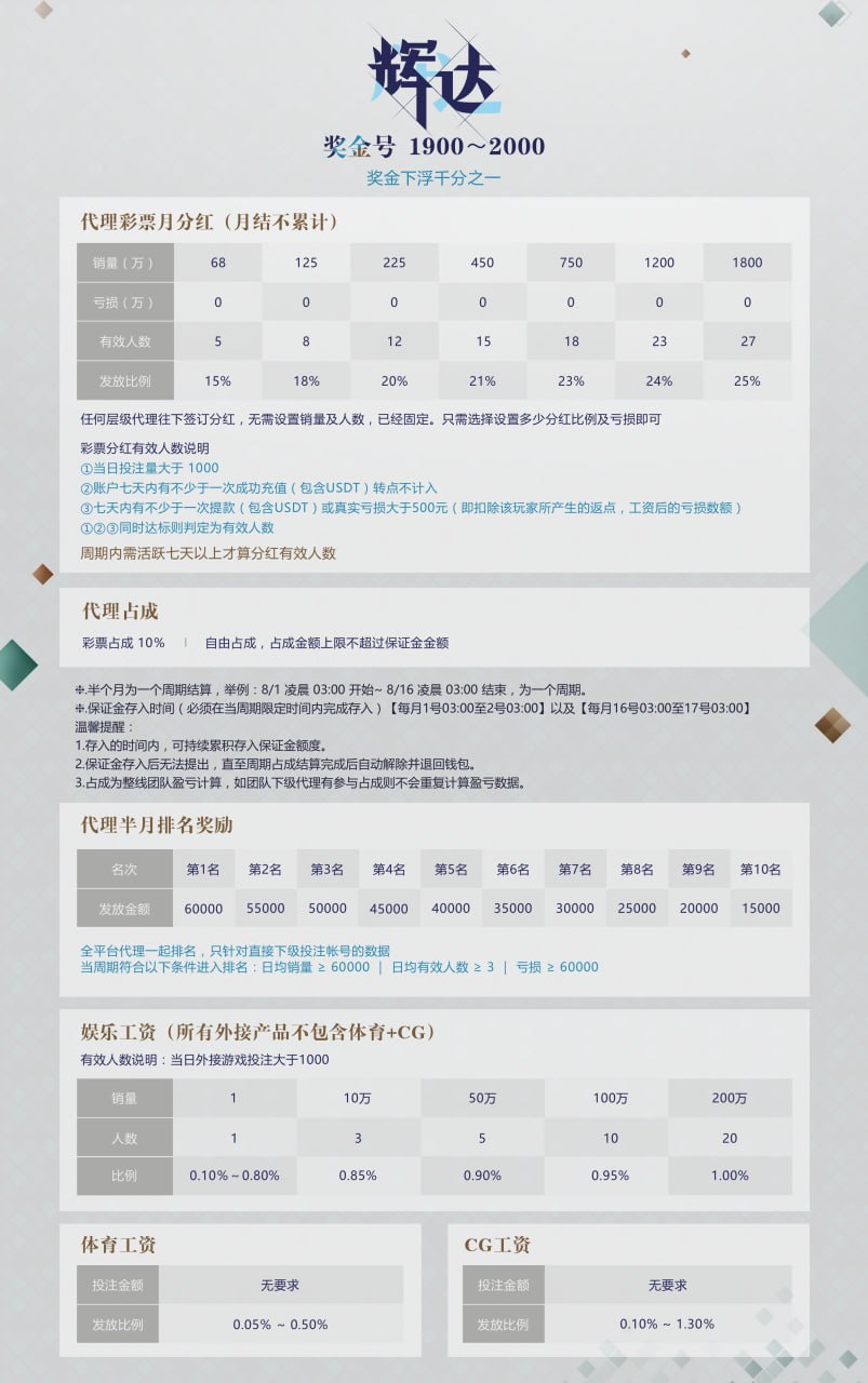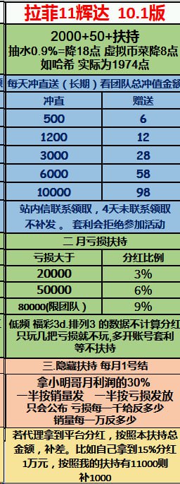 辉达(拉菲11)待遇简介: 1982+50+浮动+月分红 抽水降点后 实际最高就是1982 如奇趣 各菜种定位胆玩法-18点就是真实的点位 团队扶持 每日充值送+分红扶持+销量送